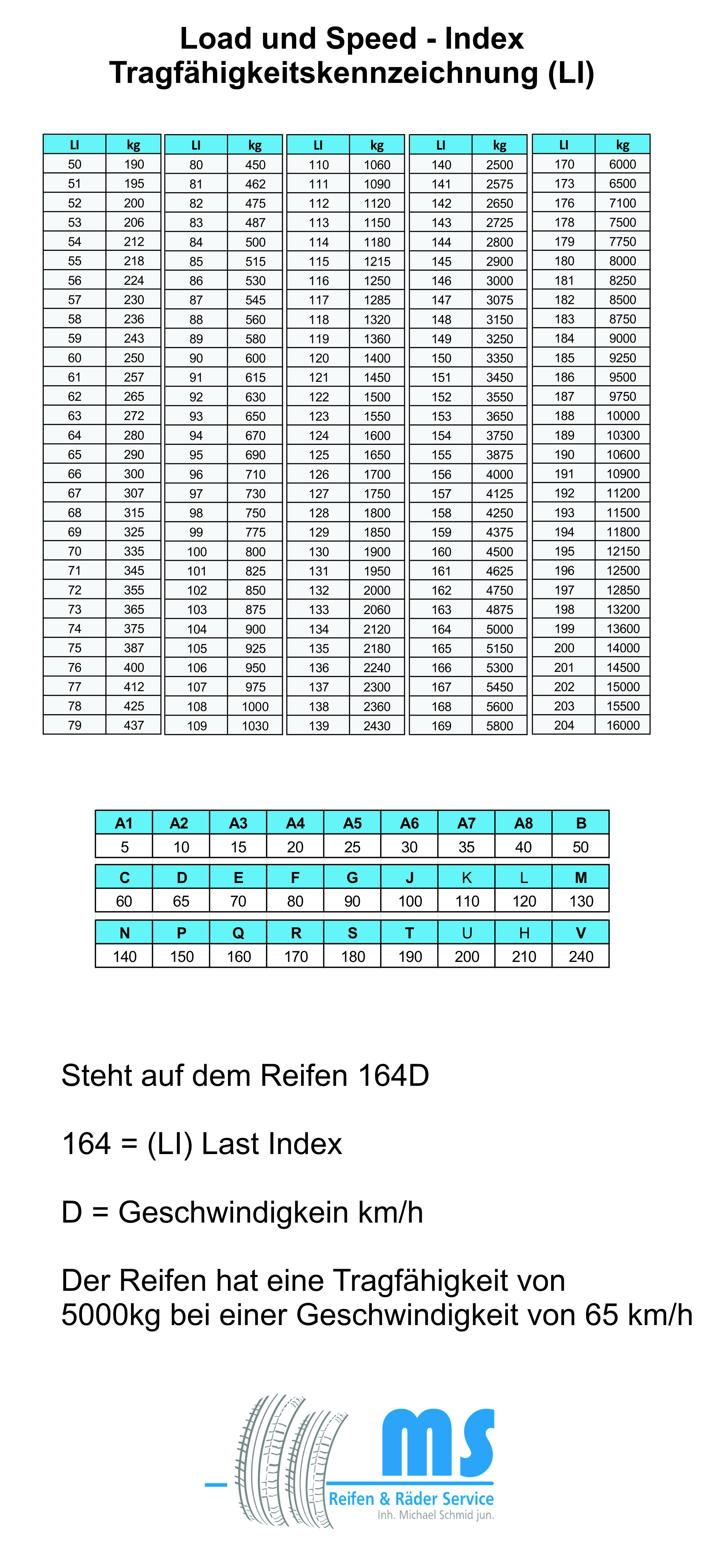 Load und Speed Index Bezeichnungen